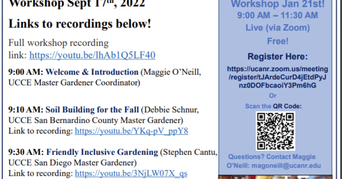 We will also be hearing from one of our partners and supporters, including IERCD (Inland Empire Resource Conservation District) about all the great things they are doing in the community. Save the date for our next workshop on Jan 21st! Register below! It is open to all whether currently involved in a school or community garden or just interested in perhaps doing so! Also feel free to join and share upcoming events and activities at your community or school garden!