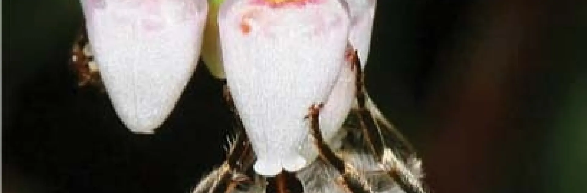 Another common visitor, the leaf-cutter bee (below, right) (Megachile perihirta) has a distinctive mandible designed for chomping leaves and stems.