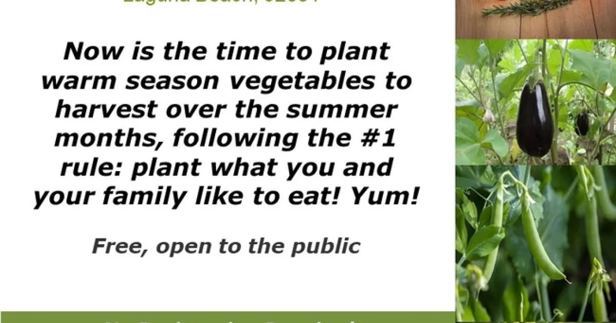 June 10, 2024 Print Now is the time to plant warm season vegetables to harvest over the summer months, following the #1 rule: plant what you and your family like to eat! Yum! Click the image to learn more and visit our Classes and Events Calendar page.