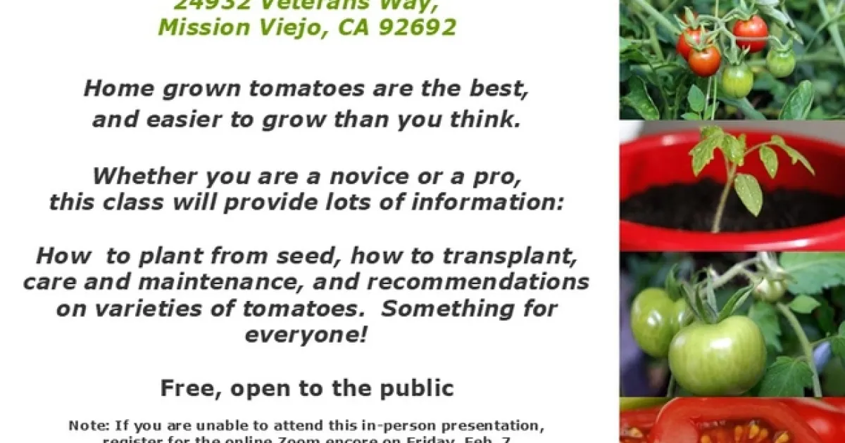 Home grown tomatoes are the best, and easier to grow than you think. Whether you are a novice or a pro, this class will provide lots of information: How to plant from seed, how to transplant, care and maintenance, and recommendations on varieties of tomatoes.