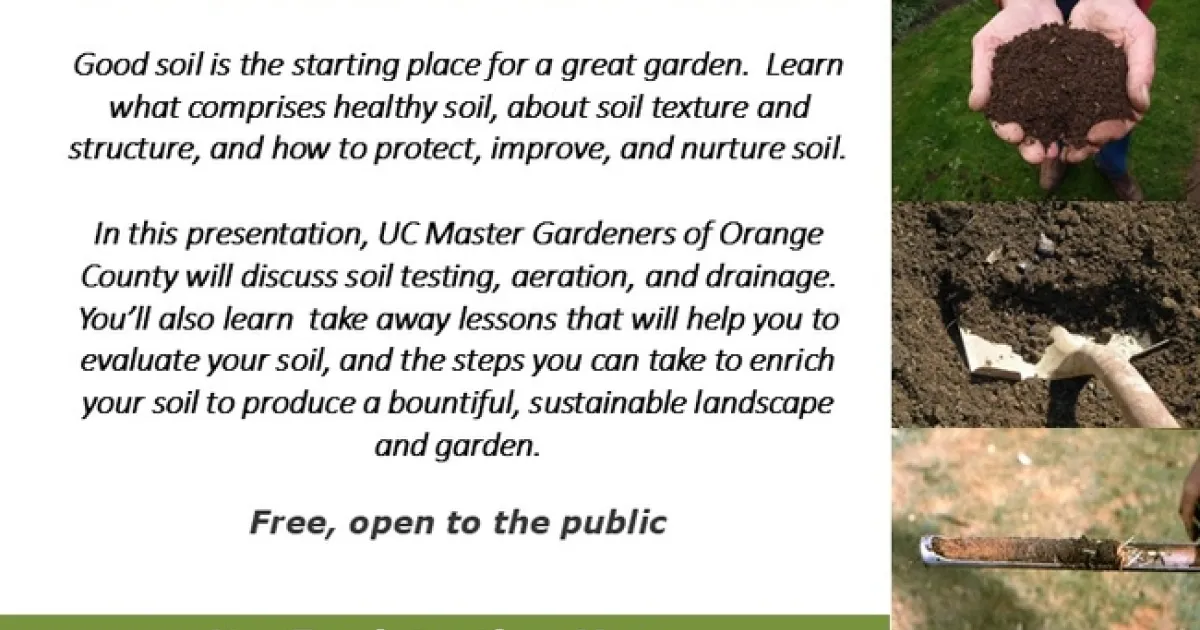 Good soil is the starting place for a great garden. Learn what comprises healthy soil, about soil texture and structure, and how to protect, improve, and nurture soil. In this presentation, UC Master Gardeners of Orange County will discuss soil testing, aeration, and drainage.