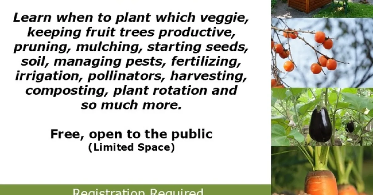 Learn when to plant which veggie, keeping fruit trees productive, pruning, mulching, starting seeds, soil, managing pests, fertilizing, irrigation, pollinators, harvesting, composting, plant rotation and so much more.