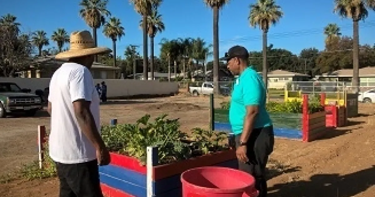 A small edible garden has started in the Eastside neighborhood of Riverside with funding from the City of Riverside's Small Spark Community Development Block Grant. Also assisting with the garden are the CalFresh Healthy Living team from the University of California (CFHL,UC), as well as UCCE Master Gardeners, Michael Fisher and Thurman Howard. The UC Cooperative Extension (UCCE) Advisor helped Riverside Faith Temple apply for the grant to start a community garden earlier this year (2019). The small grant was used to purchase materials and supplies for four garden beds and a garden shed.