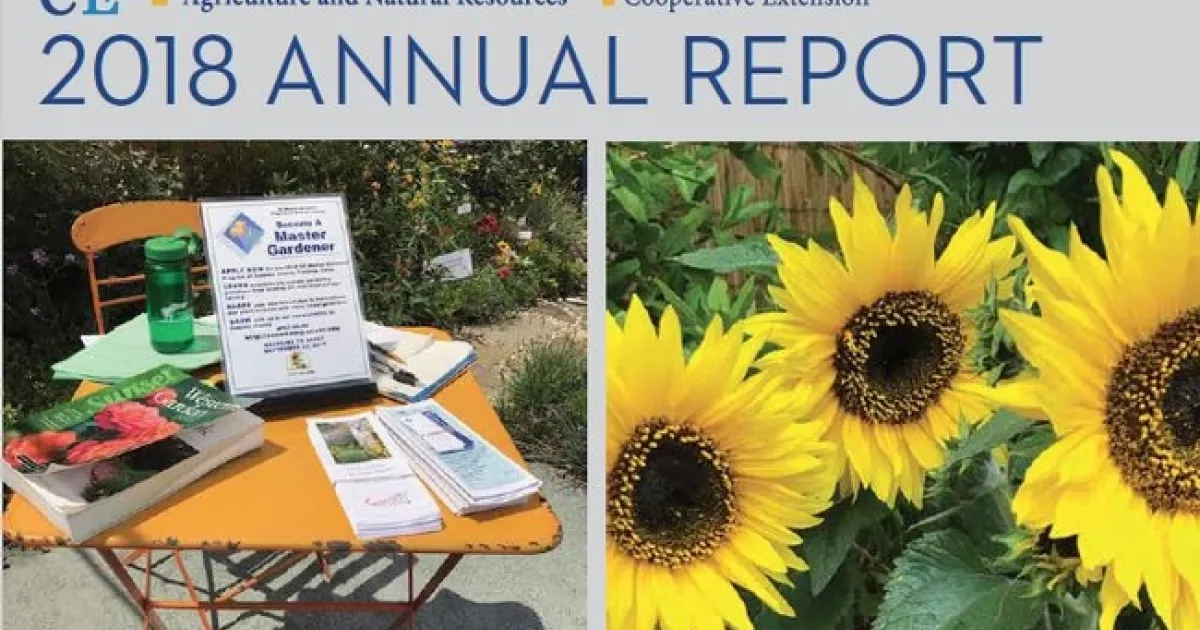 UCCE is excited to present our 2018 Annual Report, demonstrating our commitment to education, research-based information and technical expertise in Sonoma County. Our annual report highlights UCCE's research and education impacts, which enhance quality of life and the environmental and economic well-being of the residents of Sonoma County. Our UCCE advisors and County staff continue to bring the highest quality of science to address local issues, especially related to wildfire recovery.