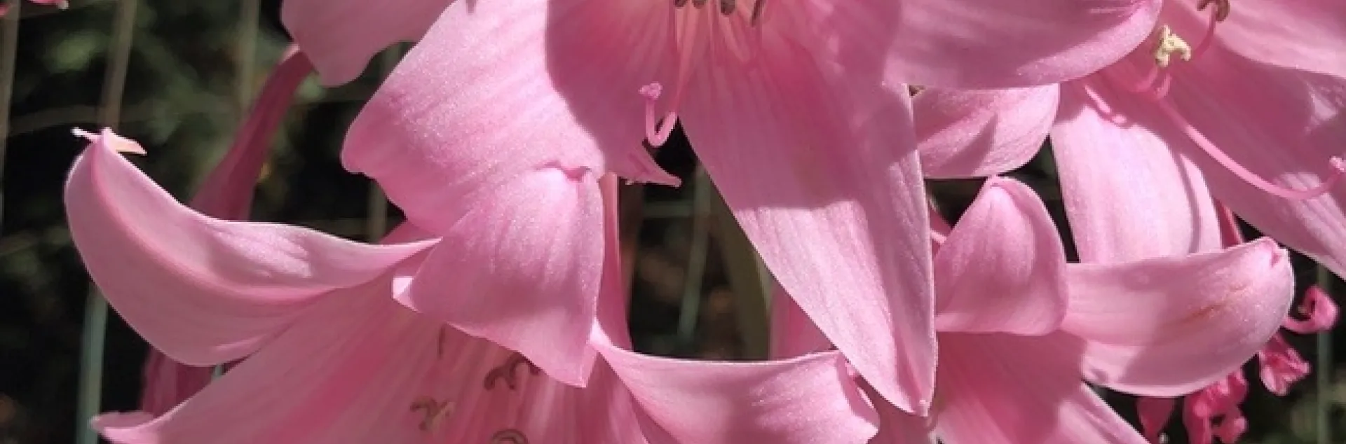 I was curious about why the Naked Lady is so widespread and how it seems to thrive on neglect. The Naked Lady is native to the western part of the Cape of South Africa and originates from a plant community similar to California's chaparral community. In South Africa, the plant is called the March lily for its blooming season in the southern hemisphere. Like some chaparral plants, the Naked Lady blooms after wildfire, perhaps because the fire removes plants that shade its leaves.