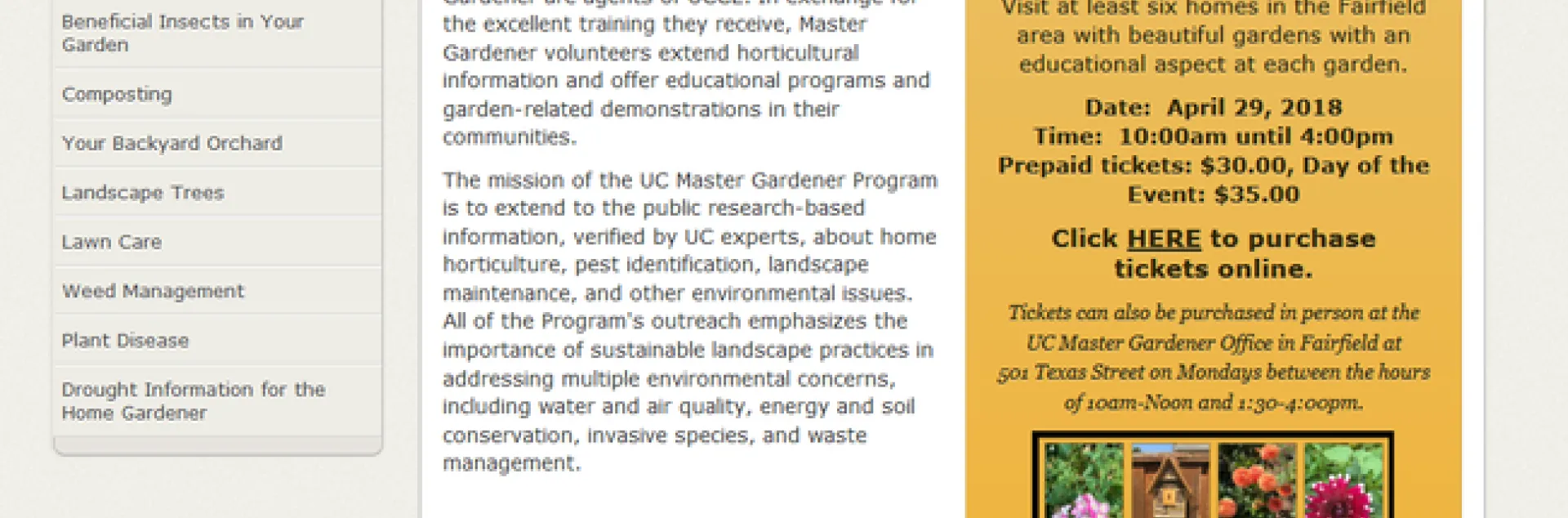 If you answered no to any of these questions, you may want to visit (or revisit) the UCCE Master Gardeners of Solano County website at http://solanomg.ucanr.edu/. Solano gardeners can find a wealth of gardening advice and solutions to garden problems on the website.