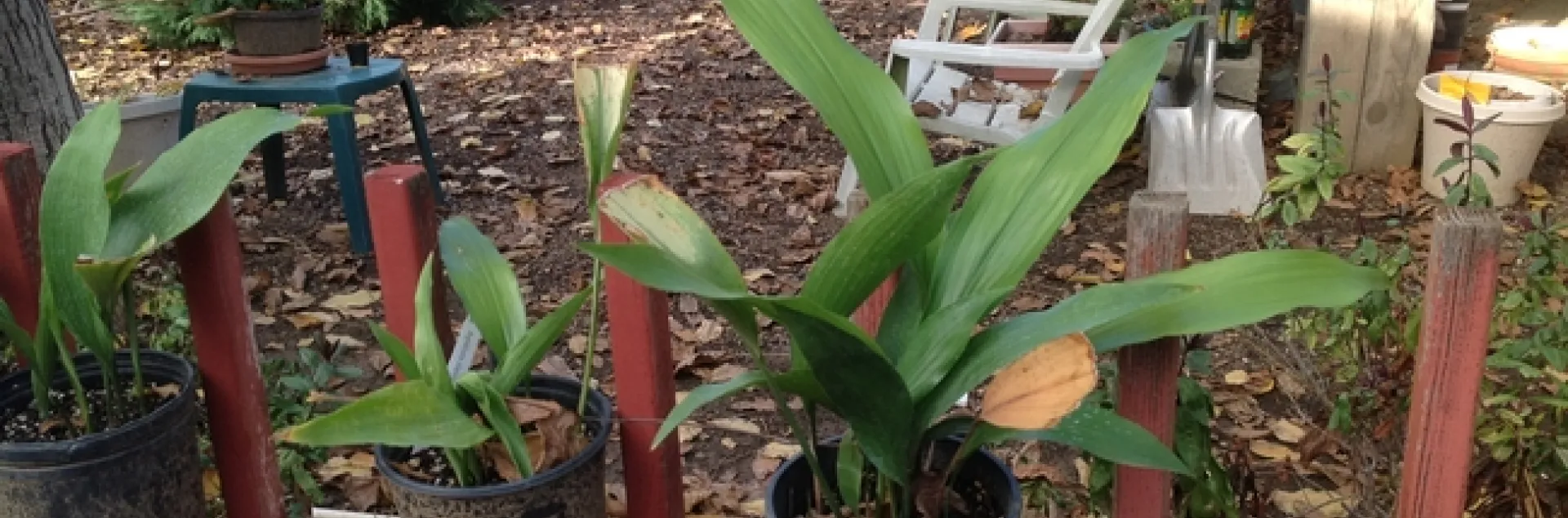 The picture below is of the cast iron plants that followed me to my car last September after the Master Gardener Plant exchange. The day of the plant exchange, when all kinds of plants arrived from the college's horticulture program, I googled this plant several times. Thankfully, its name was on the stick in the pot to make it easy for me to find. Aspidistra elatior. Sounds elegant in Latin. Anyway, once I got them home, I had to look the information up again. Since I looked it up more than 3 times, I thought that I would share. (This is because I tend to actually remember something if I write it down.)
