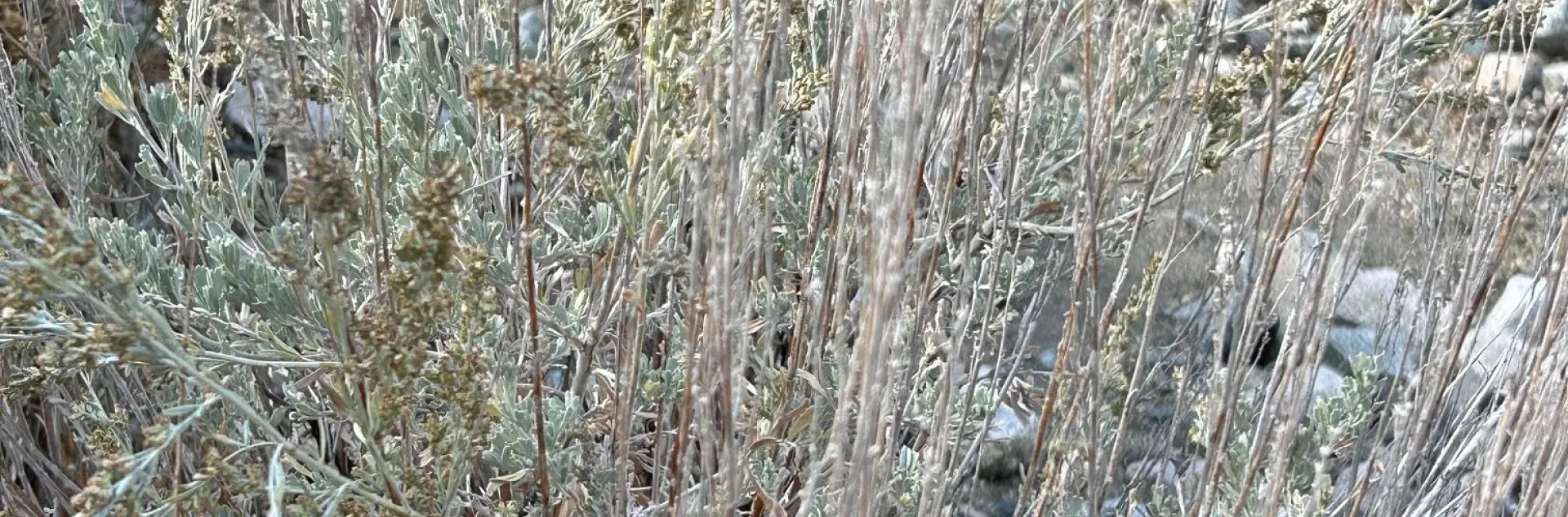 So, I decided to keep investigating, keep following my nose. Finally, I found it! It was a less showy silver-gray plant with small leaves that emitted a strong but pleasant odor when I rubbed the leaves. The phone identified the plant as Artemesia tridentata, Big Sagebrush. That’s it, that’s what I had been smelling, Sagebrush. Calscape describes these native plants as highly aromatic, long-lived, drought-tolerant and nitrogen-fixing. They provide food and shelter for various insects, birds, and mammals. They require full sun and form mounds three to 15 feet tall.