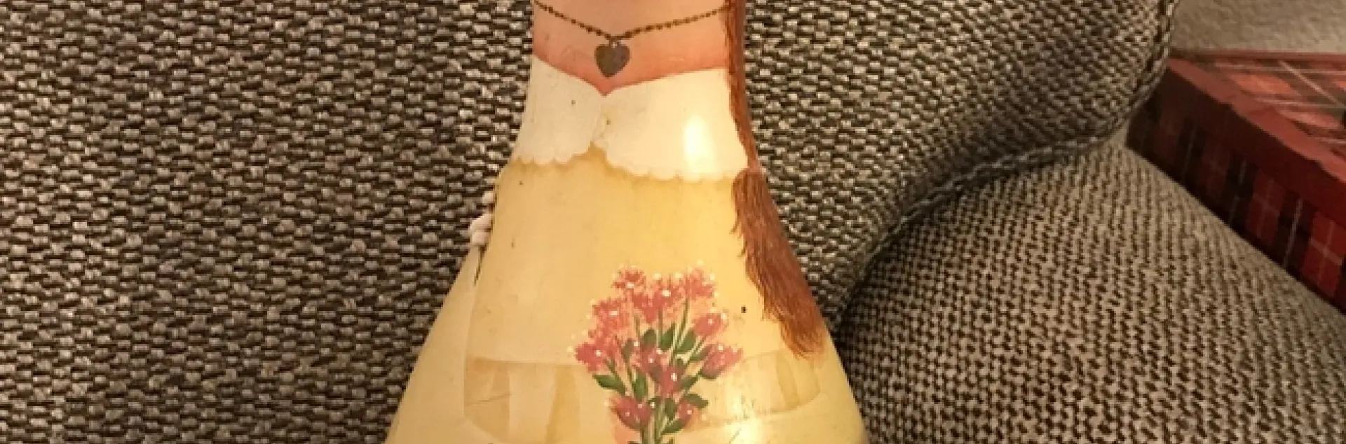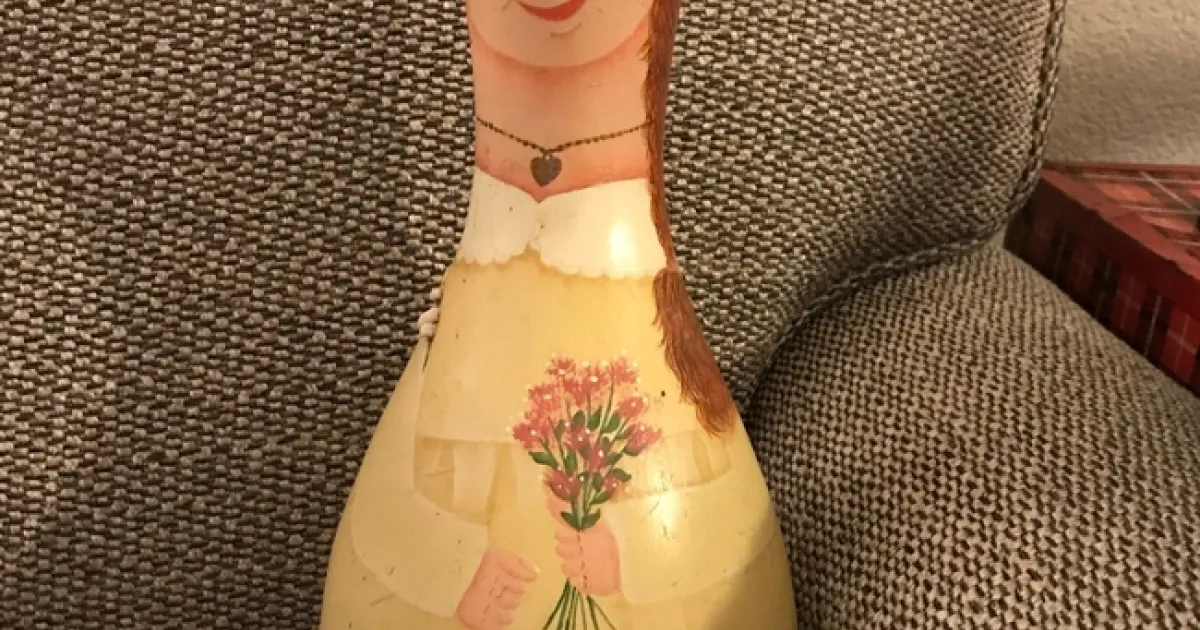A few years ago I received a garden angel that was made out of an old bowling pin. It was hand-painted and had a country feel to it. I set it out on the edge of my patio, nestled among the pots, and would bring it in over the winter. But this year I had forgotten and it sat outside in the elements through what winter rains we have had.