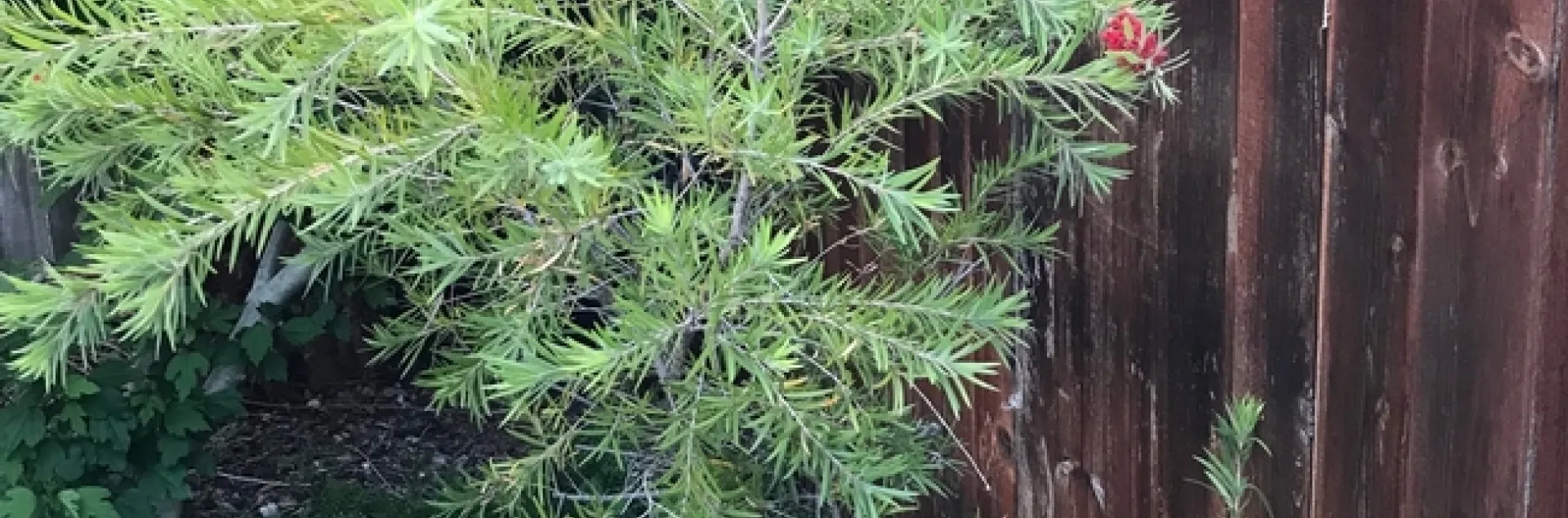 Once home I carefully sowed representatives from the seed sampler. Some germinated and a few Kangaroo Paw even made it to the four-inch pot stage before dying. My Bottle Brush survived. It never quite thrived though and I moved its container from place to place in my yard over the years. I finally put it in a half wine barrel and it even made it through the drought years. I had read that it needed full sun and should bloom “freely”. I brooded.