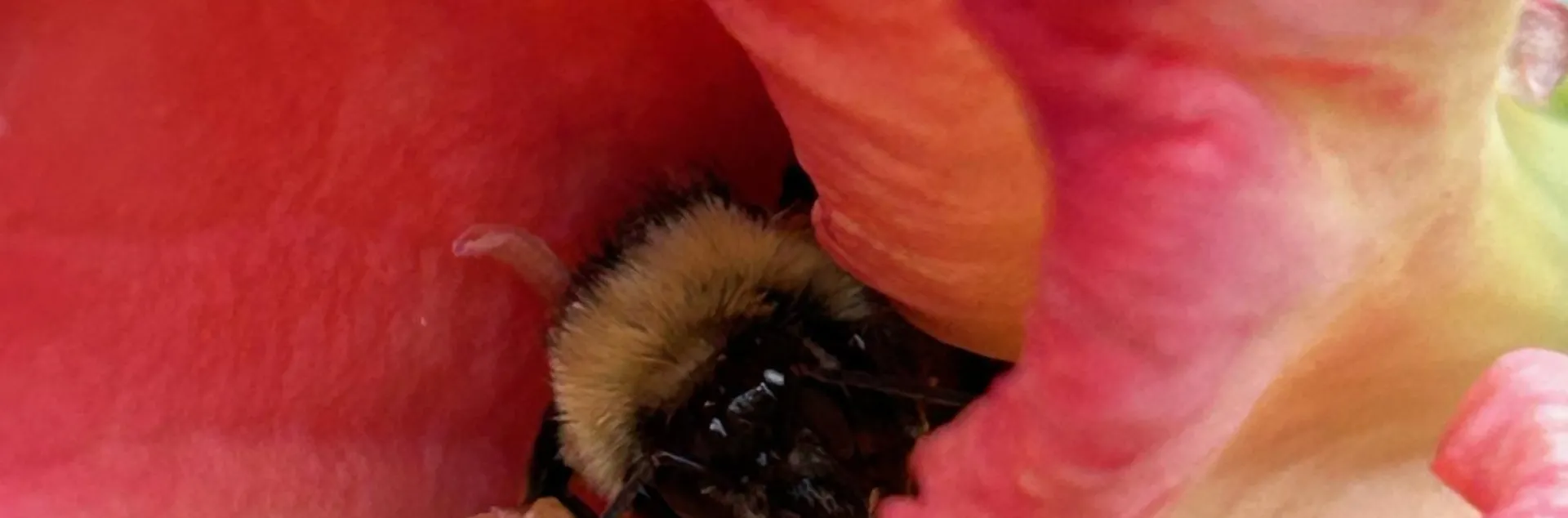 Close-up of sleeping bee in the flower bud. photo by Karen Metz