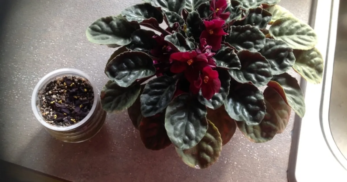 Being on lockdown does have some perks, like actually cleaning the house and getting out into the yard for cleaning there. So, I was dusting (YUCK!) and moved the violet shown below to actually dust under it. There were many spent flowers with the seeds still in place, so I thought to myself, "Why not?" Kathy Gunther's class is the inspiration. If she's crazy, I mean lucky, enough to grow a violet from seed, maybe I can be too! She didn't say that she picked the seeds herself, but the 2 plants that I planted at the class are growing nicely (no flowers yet though) are the direct result of her seeds. Anyway, pictured below, the little cup of soil is generously laden with little yellow seeds. It now resides in its little water reservoir in a plastic bag on the table with the 2 from the class. Now the waiting begins...