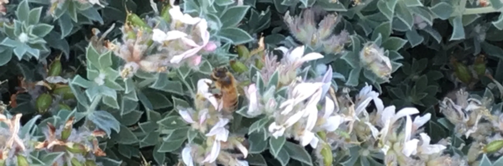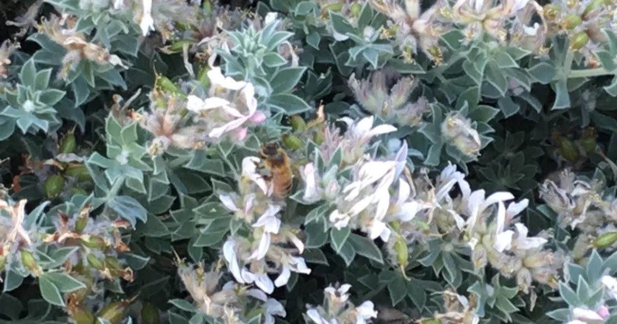 As its name implies, the hairy canary clover has fuzzy leaves. It is a low, sub-shrub perennial plant in theFabaceae family, the nitrogen-fixing family. It does not need extra fertilizer to survive as its roots fix nitrogen in the air. It blooms in the spring and attracts a lot of bees (and a photo-bomber chicken).