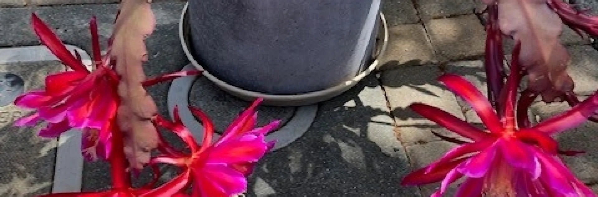 Enthusiasts just call these plants “Epis”. The ease of making a new start from a cutting has given me more confidence about attempting to grow this interesting looking plant with lavish red-pink flowers that last only a couple of days, but are so worth it!