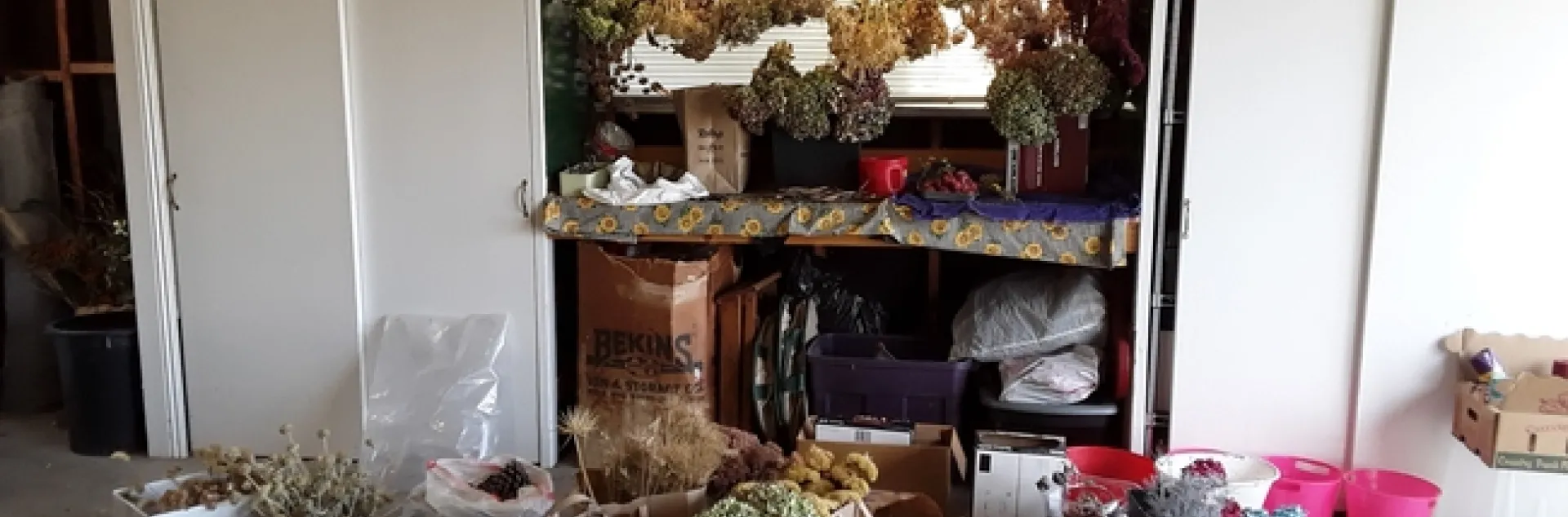 The cost for the Wreath Workshop is $50.00, for this, you receive a box of a variety of greens, wire wreath frame, and paddle wire. Also, there is a lot of dried plant decorations you can choose from to add to your wreath and a bow in any color you choose.