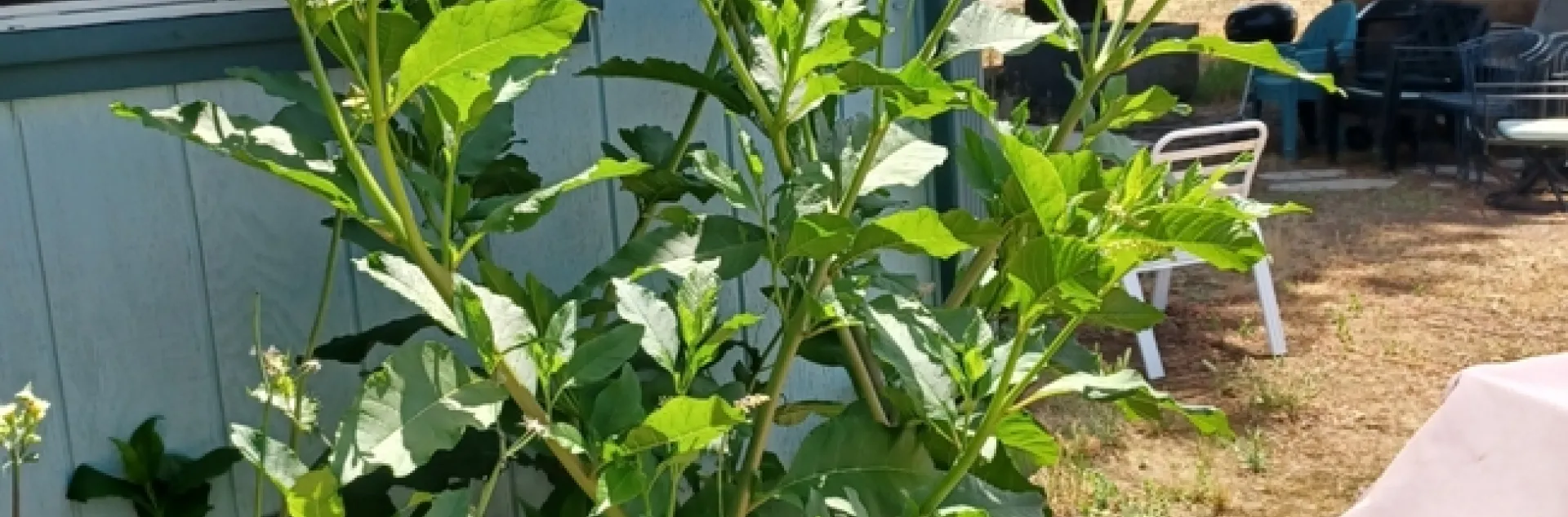 My daughter called me and asked me to come over to her house and check out this plant that had seemed to grow huge overnight. My mind immediately went to the plant from "The Little Shop of Horrors" because my daughter has a flair for the dramatic, but over I went, armed with my phone to ID this plant that she said was taking over the place.