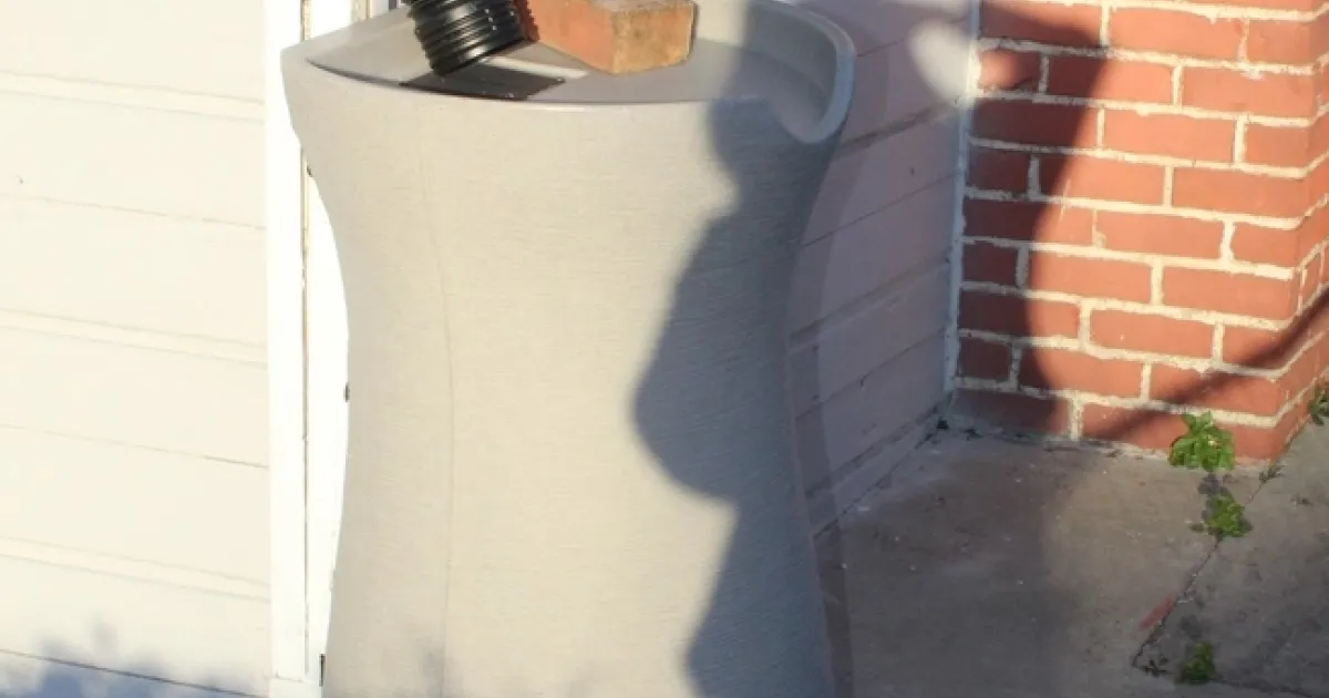 The rainwater collection was way on the bottom of my “to do” list until I spied these decorative 50 gallon rain barrels at the local Costco. Hmm- I thought I could install these at my place with a minimum of effort. Of course if I had a pickup truck or a small van buying and transporting a 50 gallon rain barrel is not a problem. A small car hmm. I didn't have a tape measure with me so I thought I'll come back later. Wandering through the store I said to myself, “No I'll buy one now if it doesn't fit in my back seat I can always return it.” “And who knows maybe they'll all be gone next time I come to the store.”