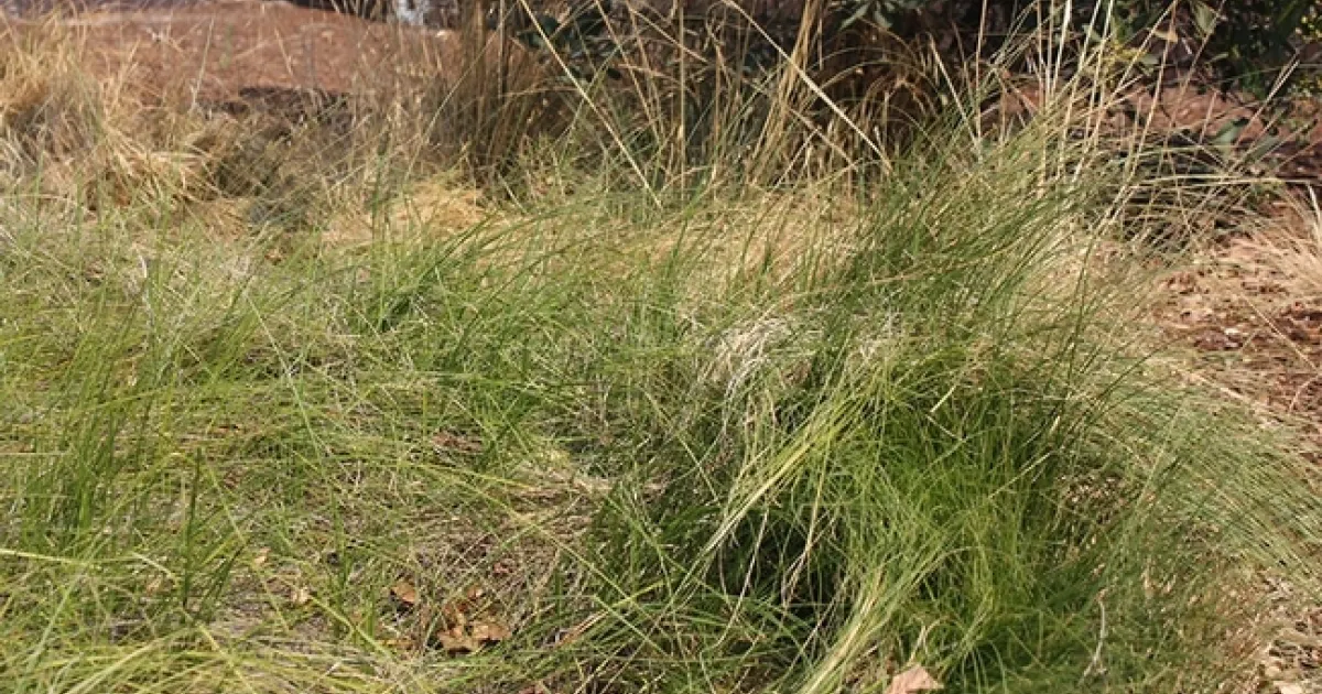 The California native Clustered field sedge (Carex praegracilis) is not technically a grass. Grasses have narrow leaves arranged in sets of two with stems that are rounded or flattened. Sedges also have narrow leaves but arranged in sets of three with triangular stems. Like UC Verde, you plant Clustered field sedge from plugs and then wait for the rhizome (yes, a rhizome) to fill in the empty space.
