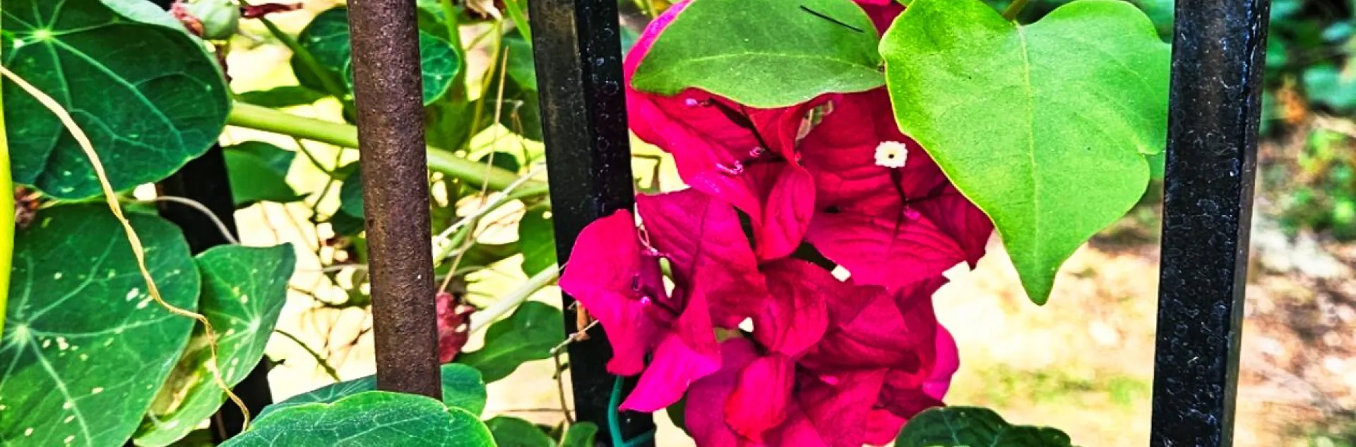 I decided to try a Bougainvillea since we have this shrub growing in another part of our yard and it is stunning! Bougainvillea blooms in many colors, including orange, pink, purple, red, white, and yellow. It is an evergreen climbing shrub and has the potential to bloom during the fall, spring and summer seasons. Bougainvillea thrives in daytime temperatures that range between 70-100°F. However, immature plants should be covered during winter frost.