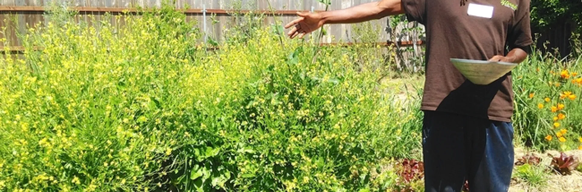 Yisrael Family Urban Farm is located on a double lot in the South Oak Park neighborhood of Sacramento, at the home of owners Judith and Chanowk Yisrael. South Oak Park is one of Sacramento's underserved communities; it has been called a “food desert,” with more fast food outlets than places selling healthy food. The half-acre farm currently includes a front-yard food forest with healing and culinary herbs, more than 40 fruit trees, rows of vegetable beds, herbs, a small flock of chickens, worm composting bins, beehives and a high tunnel hoop-house used for giving seedlings an early start in cold winter months. Yisrael Farm also makes space for community gatherings with welcoming tables and a circle of tree stumps and seats around a fire pit on a grassy area. The farm is home to many gardening and cooking workshops and other community gatherings.