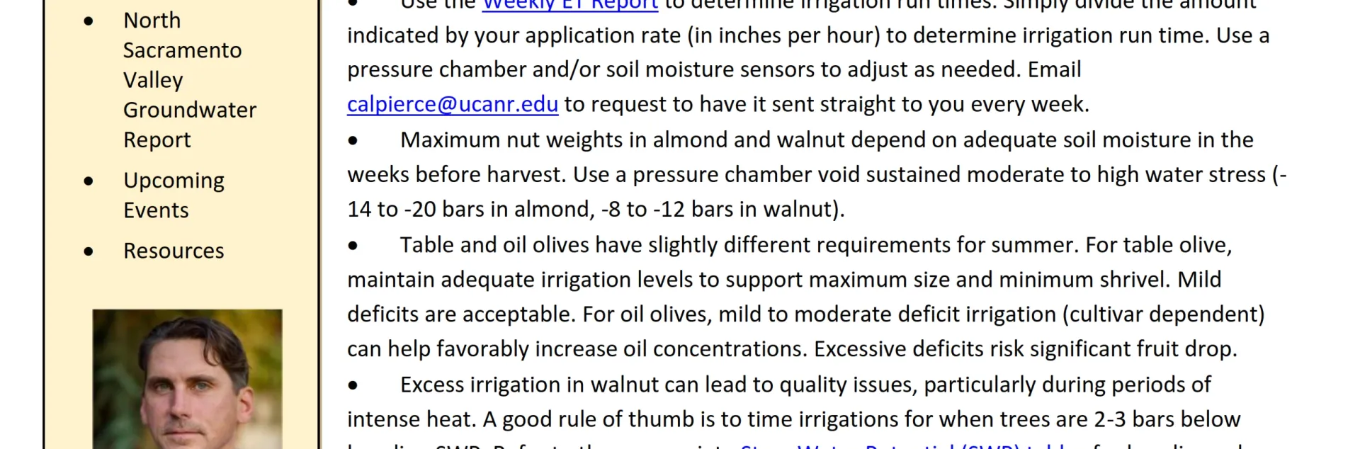 July 11, 2025By Curt Pierce Print In This IssueWater Resource Bullets for Summer 2025Prune Orchard Pre- and Post-Harvest Irrigation Management (2025)North Sacramento Valley Groundwater ReportUpcoming EventsResourcesDocuments Glenn County UCCE Sacramento Valley Water Newsletter - Summer 2025 In This Issue • Water Resource Bullets for Summer 2025 • Prune Orchard Pre- and Post-Harvest Irrigation Management (2025) • North Sacramento Valley Groundwater Report • Upcoming Events • Resources