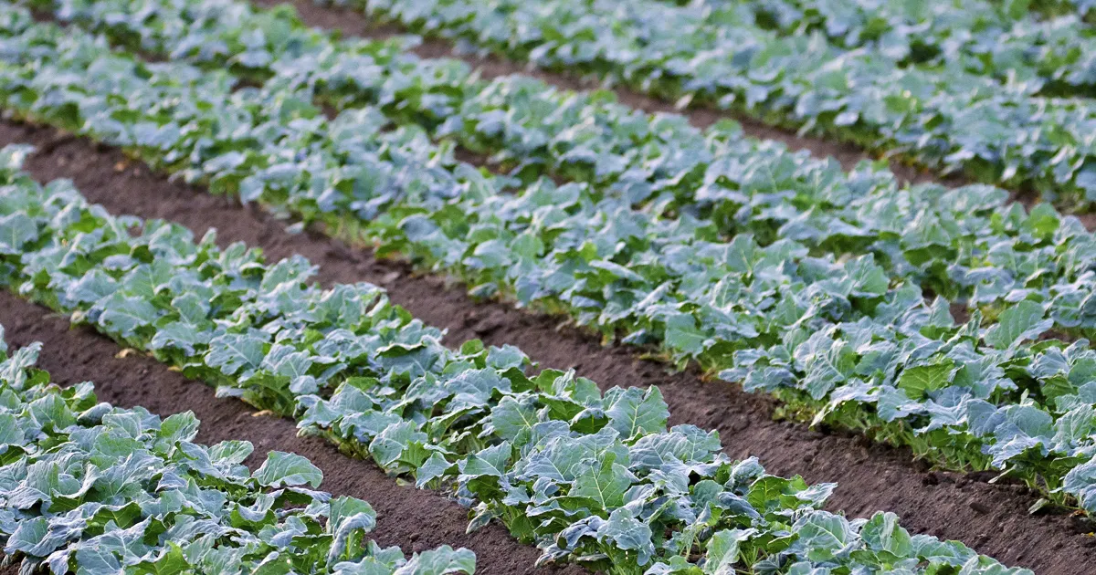 Organic broccoli plants in a field