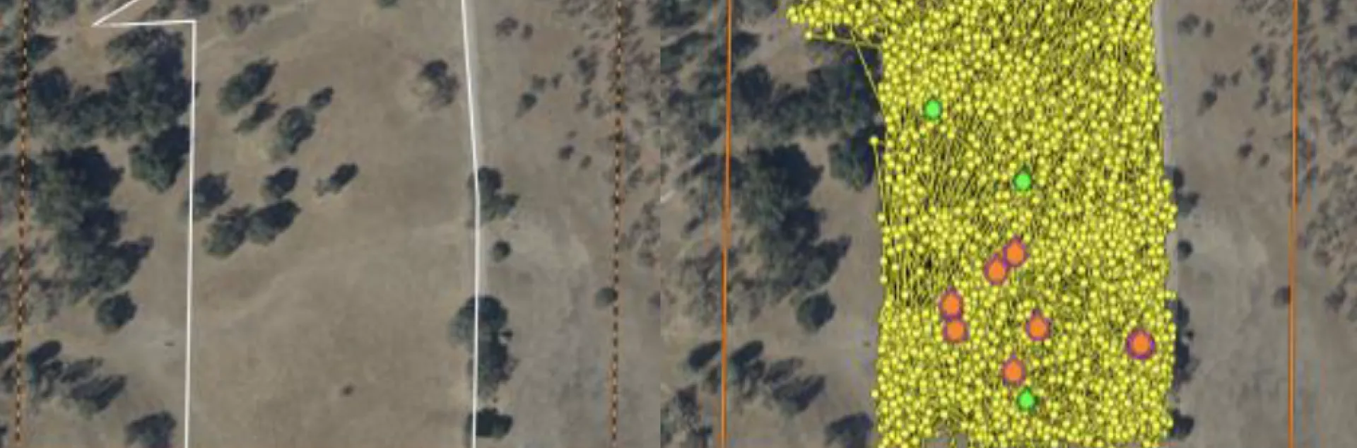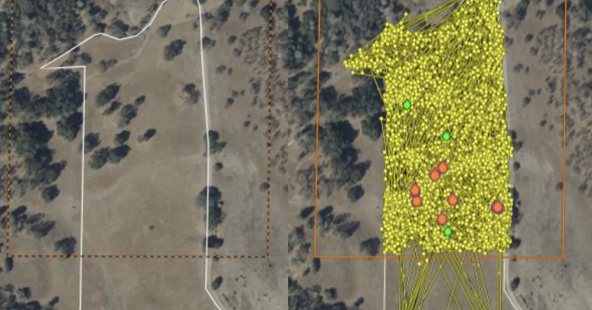 Virtual fencing (VF) is a precision agriculture tool gaining traction across California’s diverse rangelands. It uses GPS collars to contain livestock without physical fences. Producers set virtual boundaries across their pasture from a computer, which are transmitted to the collars. When an animal approaches the boundary, the collar emits audio cues and, if needed, mild electric pulses to keep the animal within the boundary.