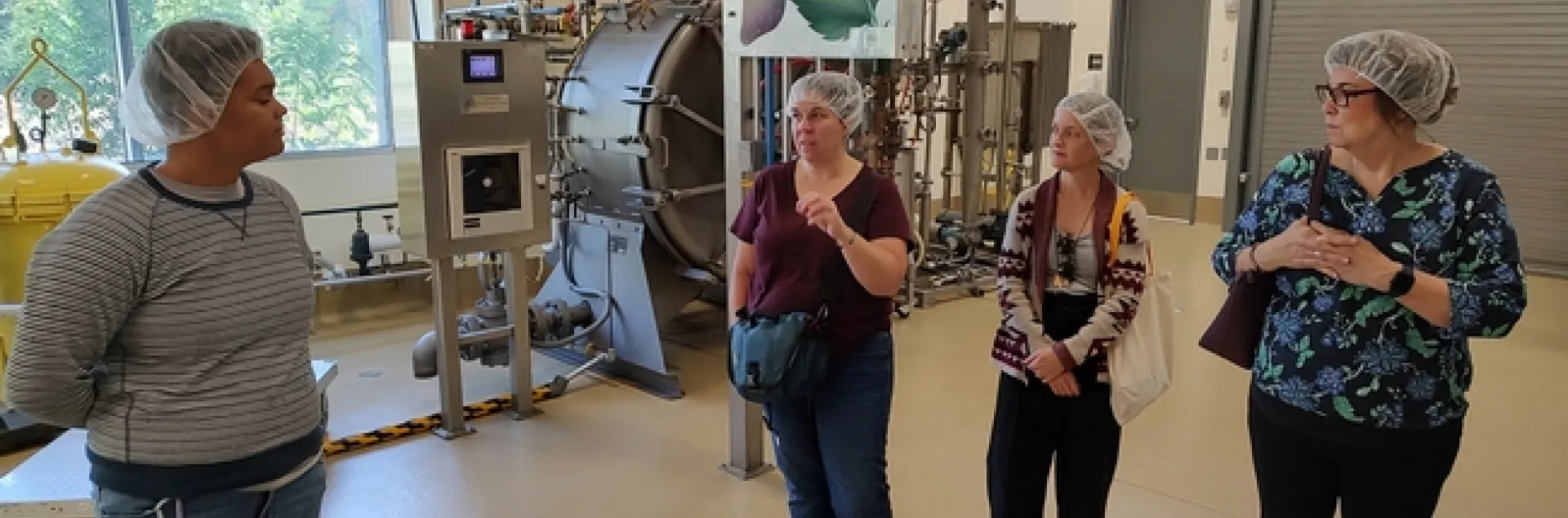 At the pilot plant, UCCE staff members learned how the 4,000-square-foot facility serves undergraduate education, academic research, university extension and food businesses. Those businesses have ranged from a five-person startup developing a poke recipe to multinational manufacturers such as Mars, Incorporated.