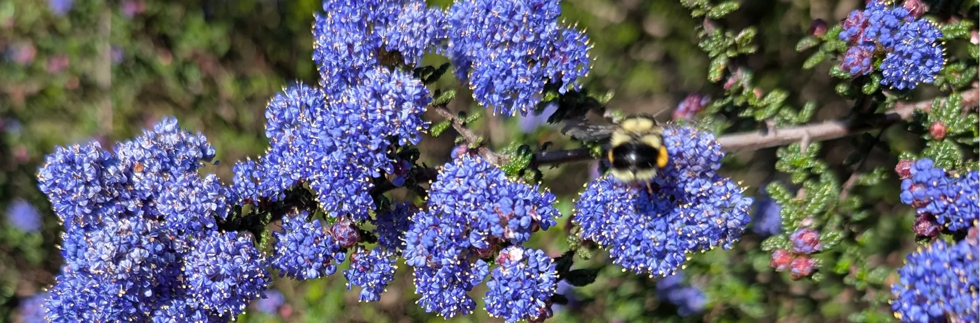 Blossoms are largely blue in a wide range of hues, but a few are white or pink. Flowers are tiny and produced in large, dense clusters that are intensely fragrant—some say overly so. Bloom period is generally March into May when flowers become food sources for larvae of some butterfly and moth species, bees, and other beneficial insects, all of which make ceanothus a component of habitat gardens or an Integrated Pest Management program.