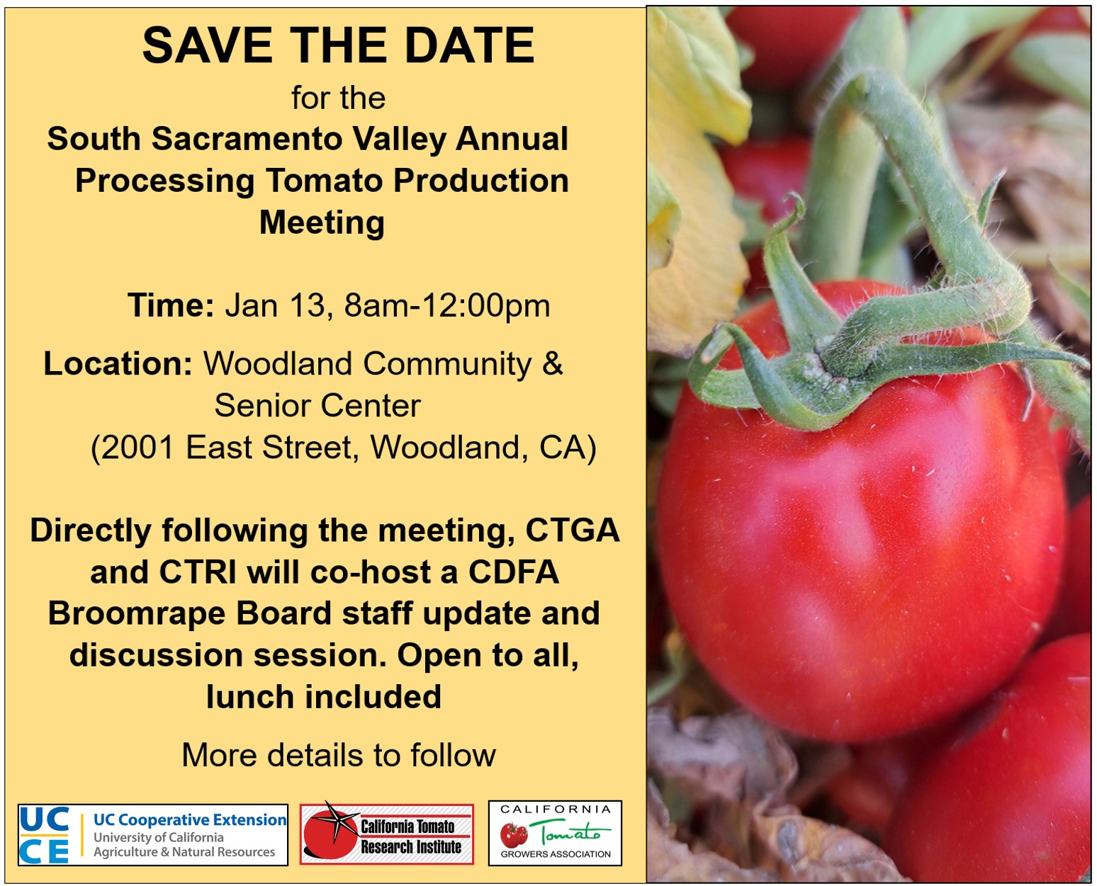 Join us for the South Sacramento Valley Annual Processing Tomato Production Meeting!