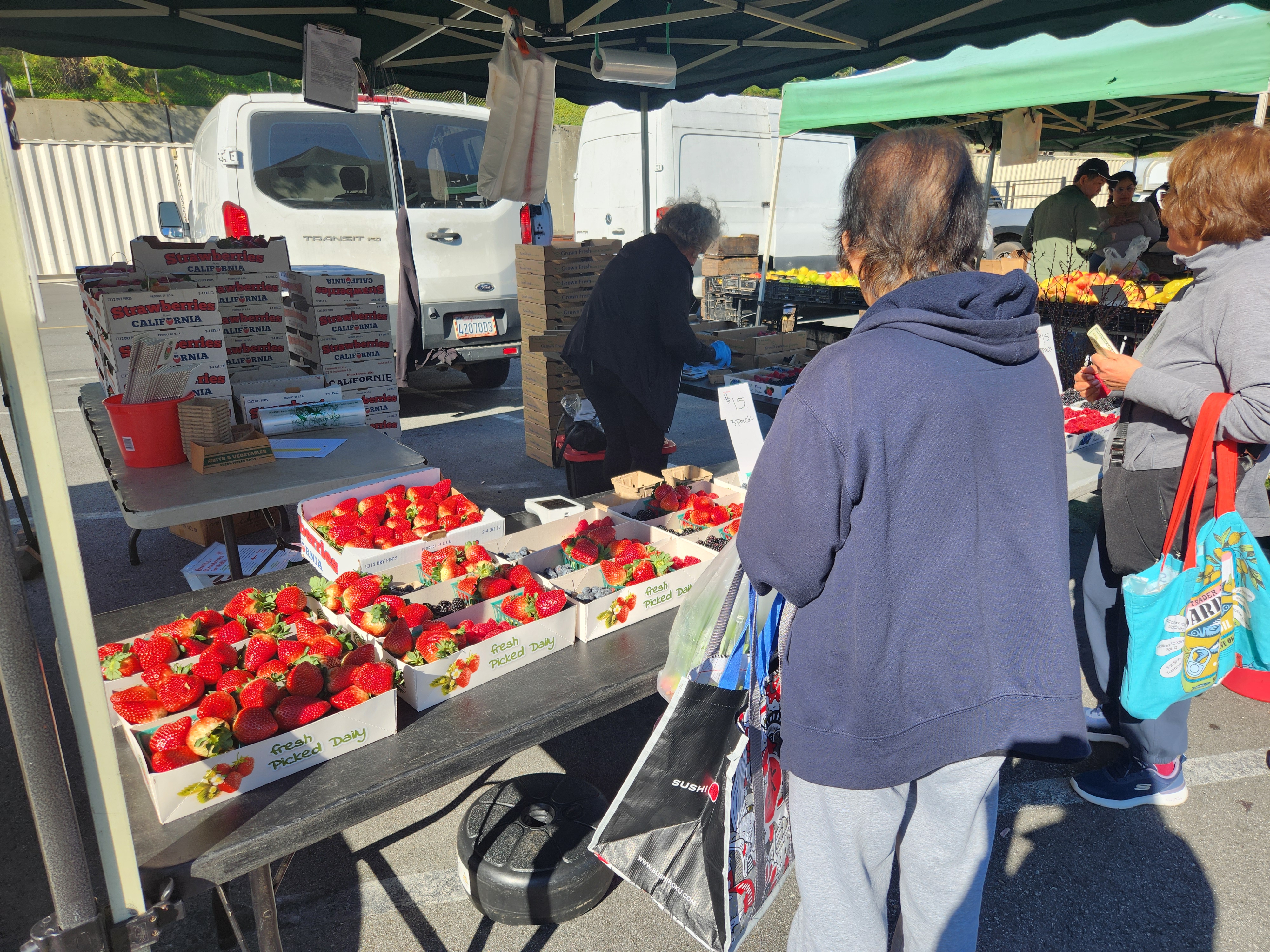 The market is located behind the multi-level garage by Crunch Fitness.