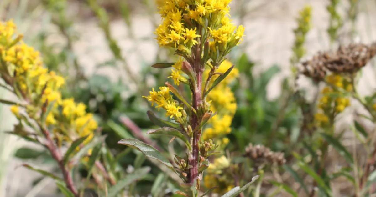 Coast goldenrod (Solidago spathulata), also called dune goldenrod, is native to coastal regions of Oregon and California on sand dunes and hillsides overlooking the Pacific Ocean. It grows up to 20 inches tall and has a branching underground caudex (swollen woody stem or root). One plant can produce as many as 100 small yellow flower heads in a branching array. This species of Solidago is used as a groundcover or lawn alternative. Coast goldenrod is visited by bats, bees, caterpillars, and butterflies. Photo: Flickr, Steve Sullivan
