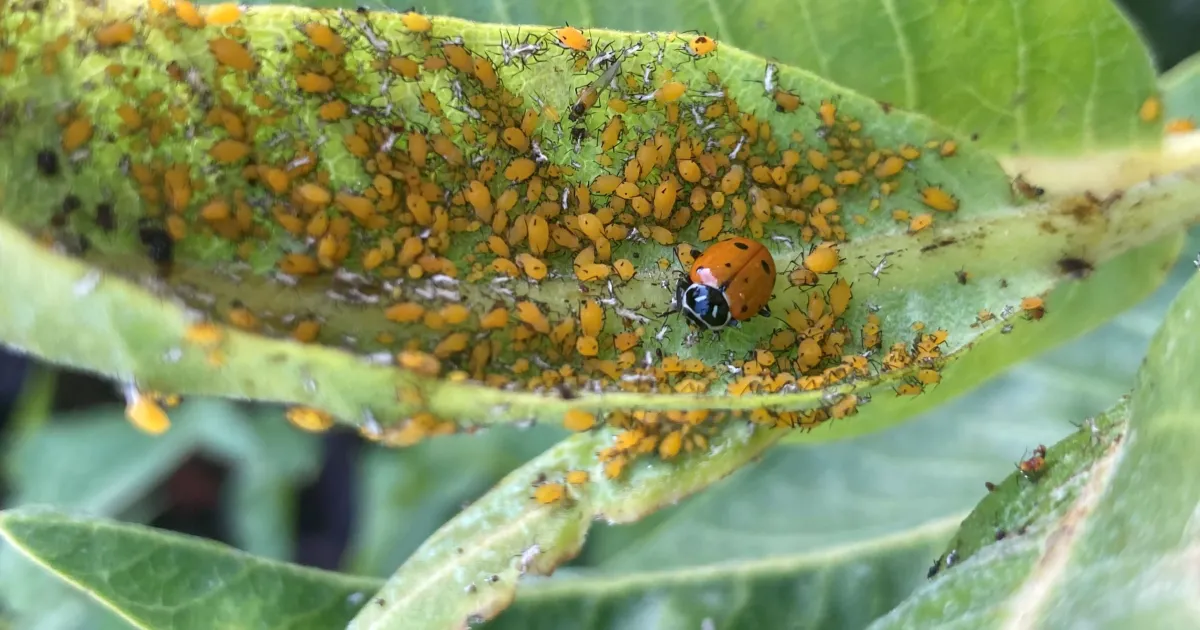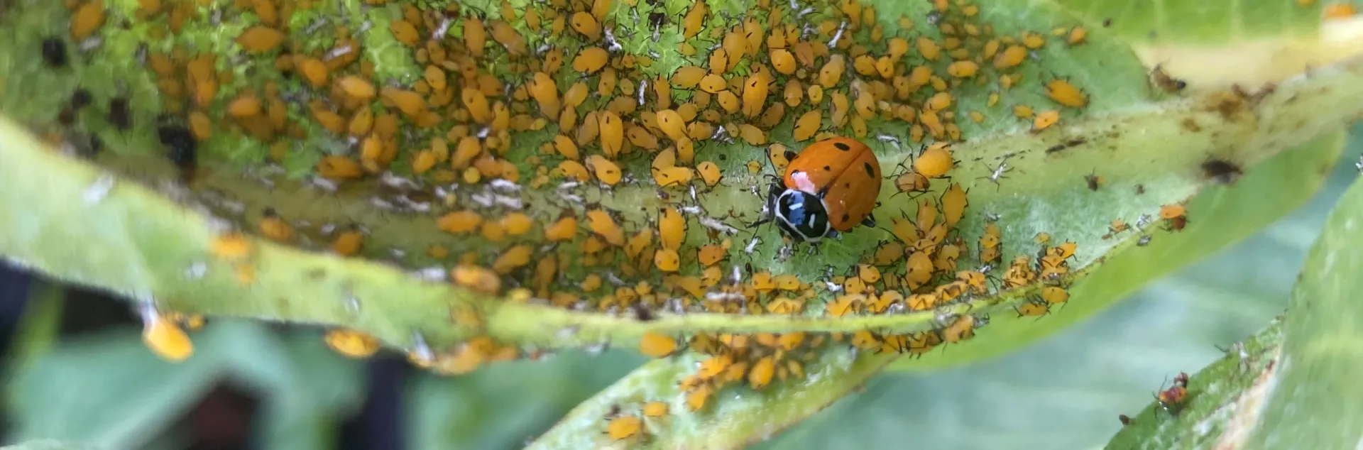 Lady beetles are the most widely known predatory insect, both as adults and larvae. They form a pest patrol, feeding on plant-eating insects such as aphids. Aphids suck the juice out of our plants and secrete sweet honeydew that attract ants. Another insect, the green lacewing larva – sometimes called “aphid lions”- is a voracious predator capable of eating up to sixty aphids in an hour. Adult lacewings feed on flower nectar and help to pollinate our plants.