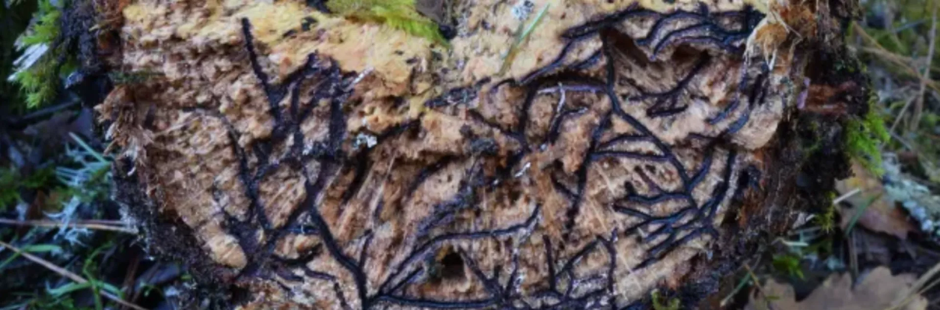 If you cut into an infested branch or trunk, MOB galleries appear as tightly packed, fan-like or trellis-shaped tunnels—unlike the rounder or more scattered galleries left by native beetles.