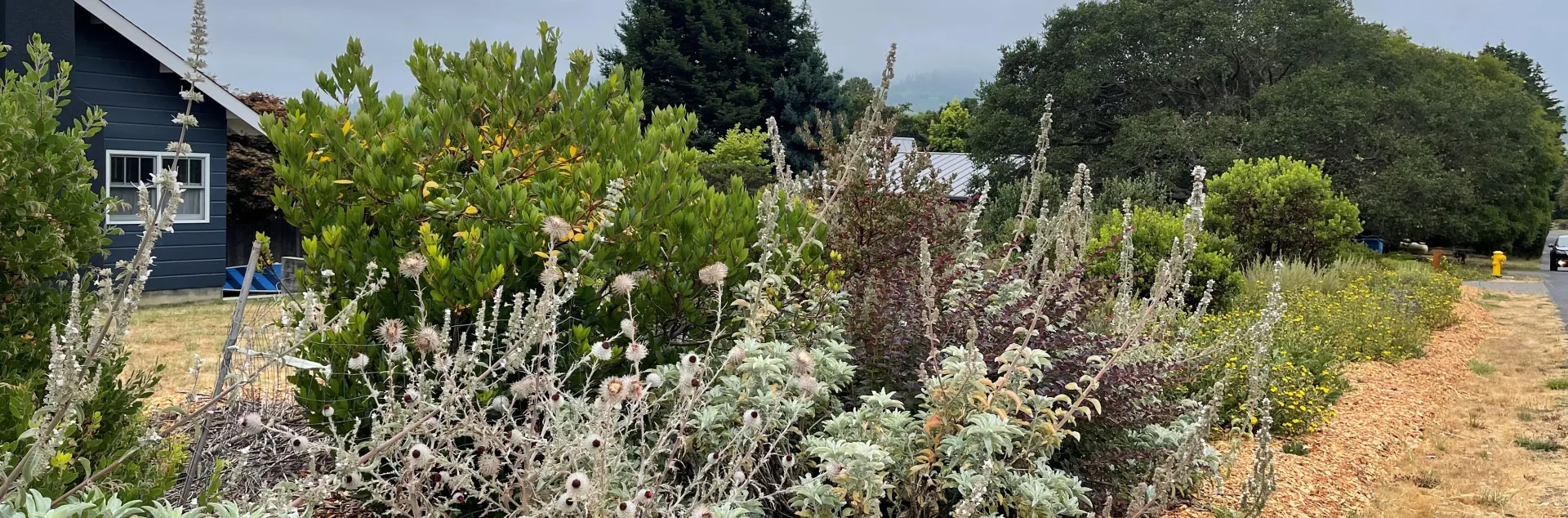 It is recommended that windbreaks be planted thirty feet or more from your house or any structure. Calculate the size—how tall and how wide—that plants will be at maturity and give them plenty of growing space. Be aware of other safety rules, such as not planting a small bush directly under a tree, which might lead to a fire ladder. For more fire-smart guidelines, see the UC Marin Master Gardener website: marinmg.ucanr.edu/BASICS/FIRESMARTLANDSCAPING/Plan/#spacing