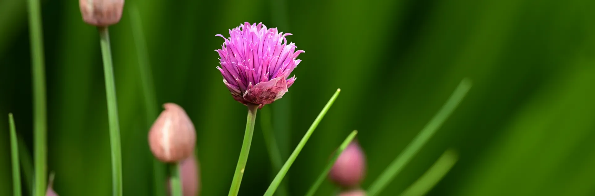 Onion chives are easy, flavorful perennial herbs with mild onion flavor. The are related to garlic, leek, and bunching onion. Leaves and flowers are edible. Grown in compact clumps, their tubular leaves rise 12 to 20 inches from small bulbs. Flowers attract pollinators. Lovely border. Deer resistant and deter pests.