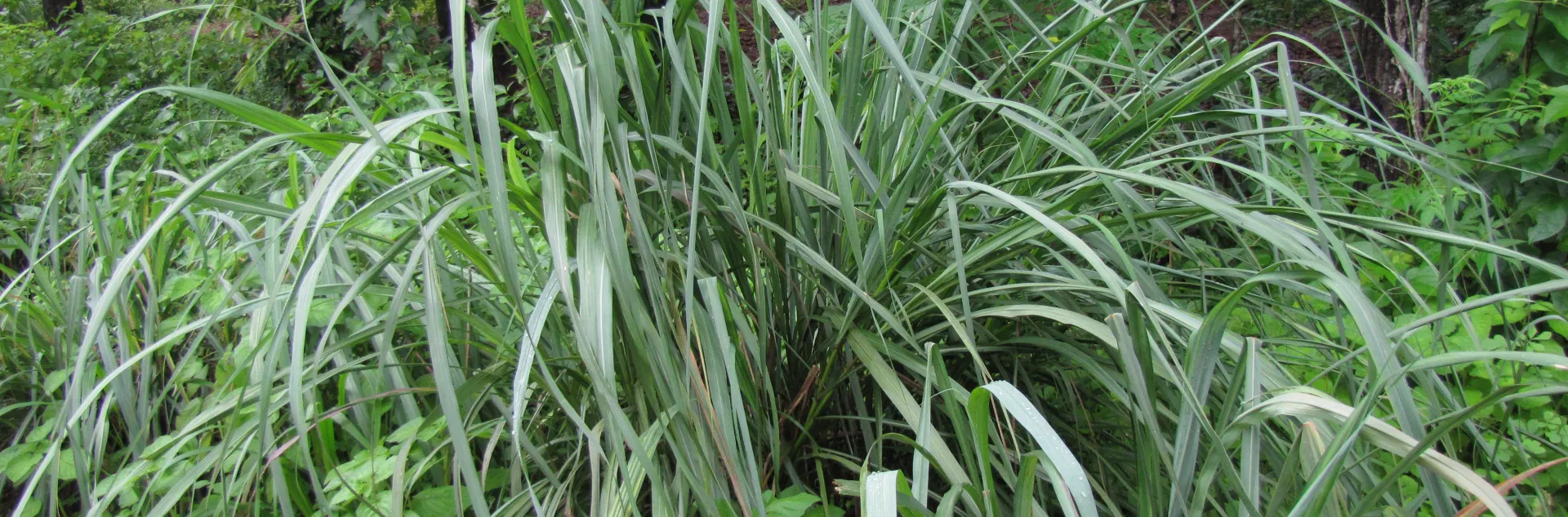Lemongrass is a fast-growing, shallow-rooted herbaceous perennial that grows up to 4 feet tall and 3 feet wide. It must be protected in winter because it is not frost tolerant. Its blue-green leaves turn red in the fall. It produces no flowers and is propagated by division. Lemongrass is used in cooking to add a lemony flavor and in cosmetics for fragrance.