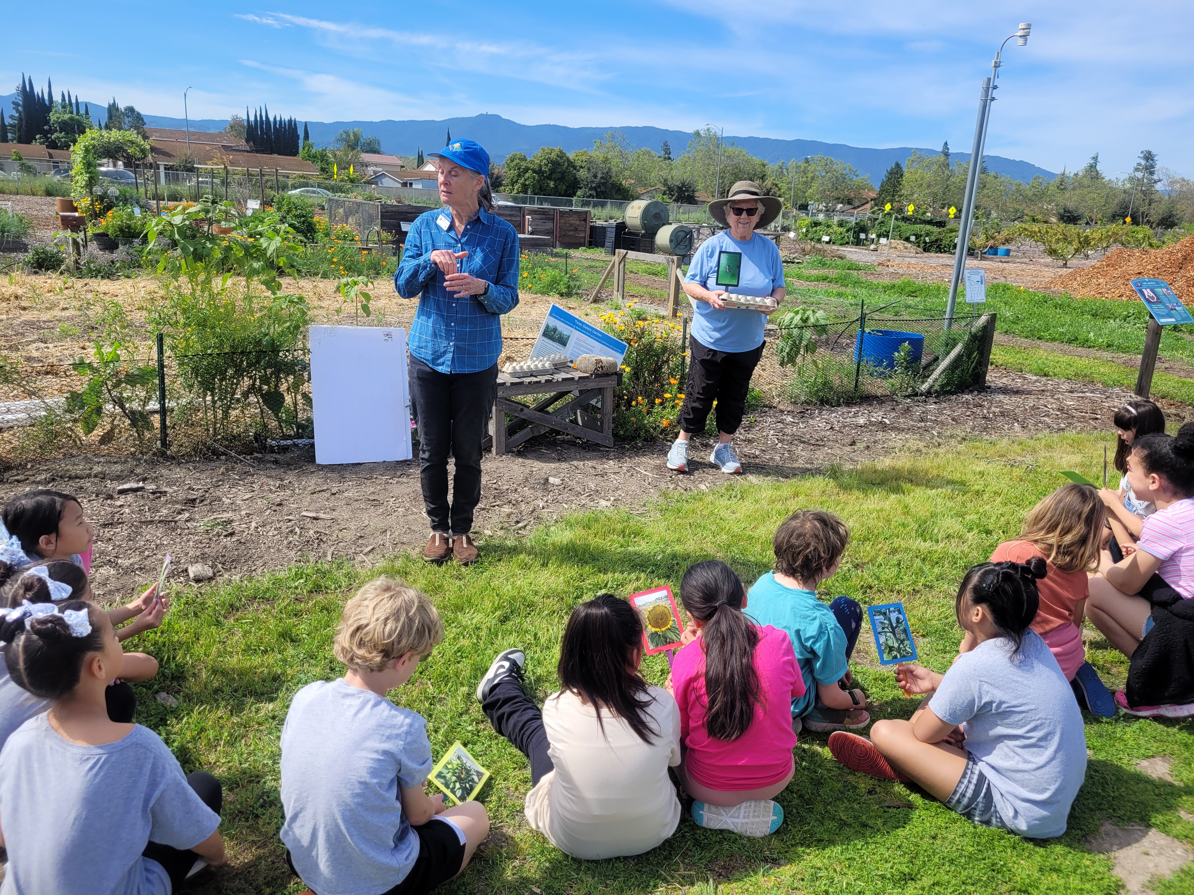 The field trips for kindergarten through 3rd grade are conducted at the UC Master Gardeners Demonstration Garden and Community Education Center. Our four-acre parcel is within Santa Clara County's 287-acre Martial Cottle Park which showcases the area's farming past and celebrates the agricultural heritage of Santa Clara Valley. We demonstrate many aspects of gardening in this parcel, from native plants to vegetables to fruit trees and more. We are located at Martial Cottle Park, 5283 Snell Ave, San Jose, CA 95136.